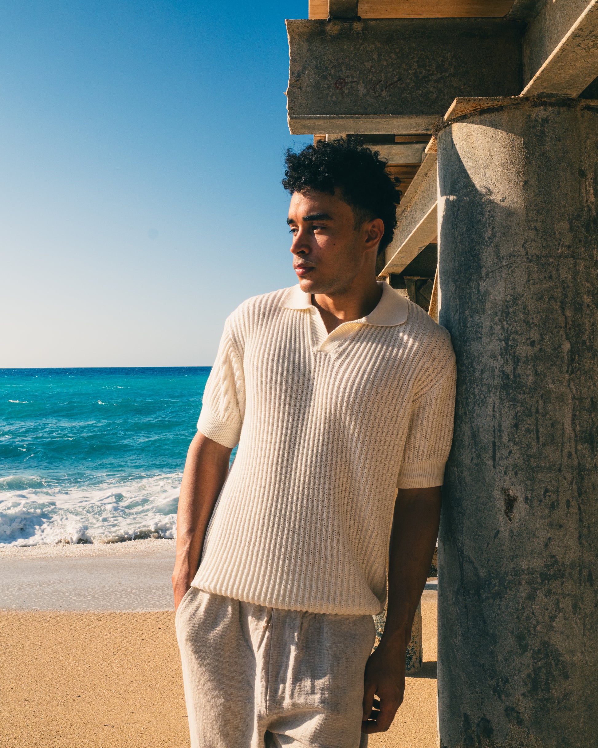 The 'Brume' Polo is a knitted shirt in a relaxed fit, inspired by the softness of morning mist at dawn.